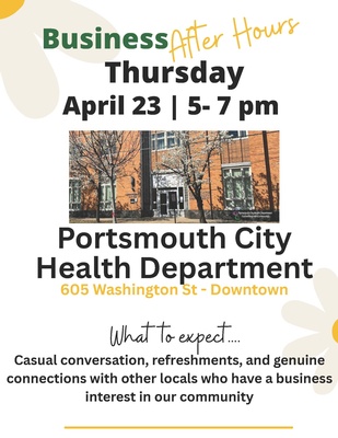 Join the Portsmouth Area Chamber of Commerce and fellow members for a Business After Hours which will be held at the Portsmouth City Health Dept, 605 Washington Street in downtown Portsmouth.