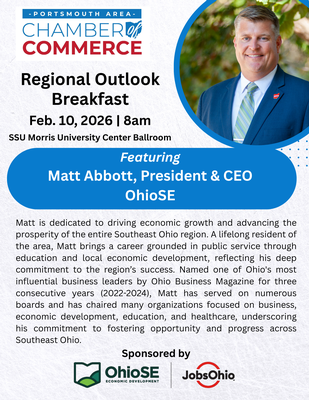 Join the Portsmouth Area Chamber of Commerce as we host the 2026 Regional Outlook Breakfast featuring Matt Abbott, President and CEO of Ohio SE.